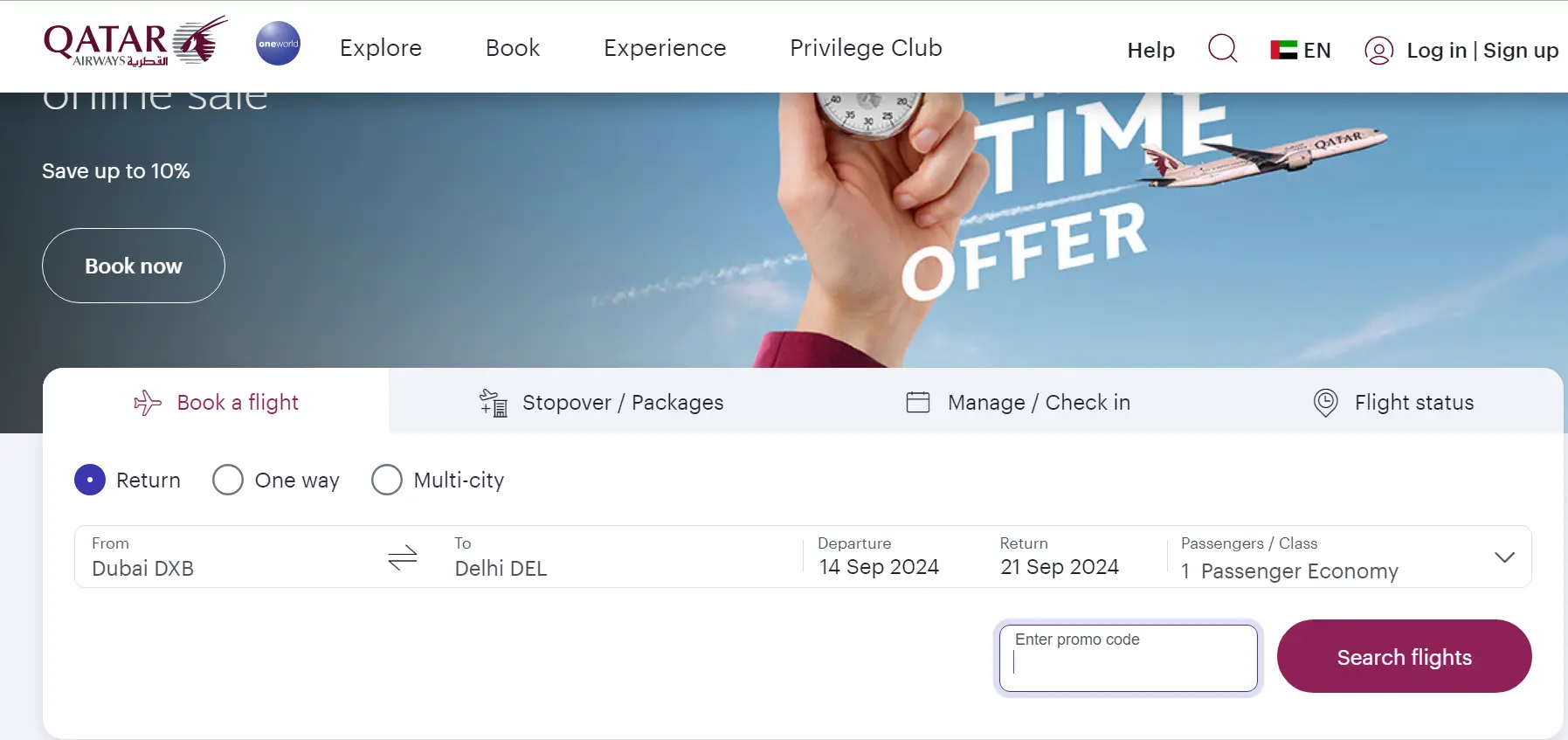 Enjoy up to 20% off on select routes during the Summer Sale. Book now and explore new destinations with Qatar Airways.